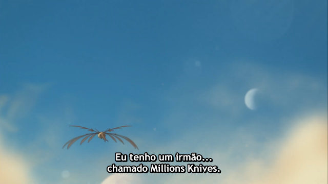 Sobre as mudanças nas vozes, eu fico dividido. Por um lado, acho todas as vozes originais muito marcantes, tanto na versão japonesa quanto na brasileira. Por outro lado, um re-cast é algo que me anima a ficar pensando em quem vai dublar os personagens que ainda não apareceram. Já até tenho os meus palpites para quem vai dublar a Meryl, Milly e Nicholas. Já está devidamente registrado, para eu me gabar caso acerte algum. Ainda assim, é realmente estranho ver o Vash falando e a voz dele não ser a do Masaya Onasaka ou do Alexandre Moreno (conhecido por dublar quase todos os personagens do Adam Sandler). O novo cast tá repleto de nomes que gosto bastante. A Tomoyo Kurosawa que jamais vi dublando um personagem masculino, e que não me soou tão masculino quanto a voz do Vash criança no anime antigo. A Yumiri Hanamori, que dubla muitas personagens tomboys, como a Gin Minowa de Yuuki Yuuna wa Yuusha de Aru: Washio Sumi no Shou. Quase todo mundo já deve ter visto a dublagem masculina dela, já que a Ai Hayasaka se disfarça de garoto em algumas cenas de Kaguya-sama. A voz do Matsuoka Yoshitsugu combinou bastante com esse novo Vash. E a Maaya Sakamoto no papel da Rem pode trazer uma nova versão da minha música favorita desse anime, Sound Life. Pelo menos isso é uma coisa boa que acho que pode vir desse anime.